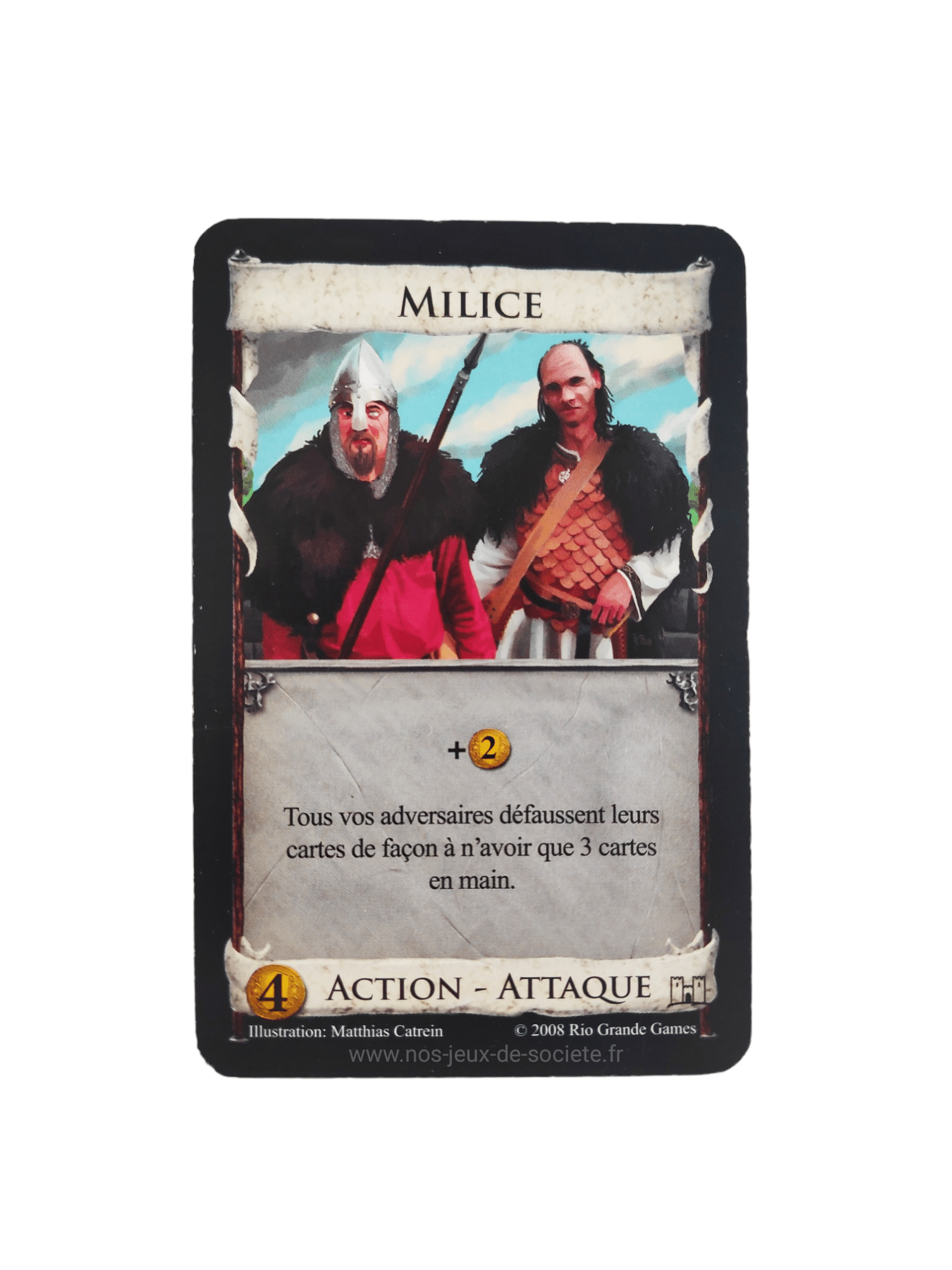 - La Chambre du conseil fait piocher une carte à l’adversaire mais vous pouvez jouer une Milice après toutes vos cartes Chambre du conseil pour l’obliger à tout jeter.